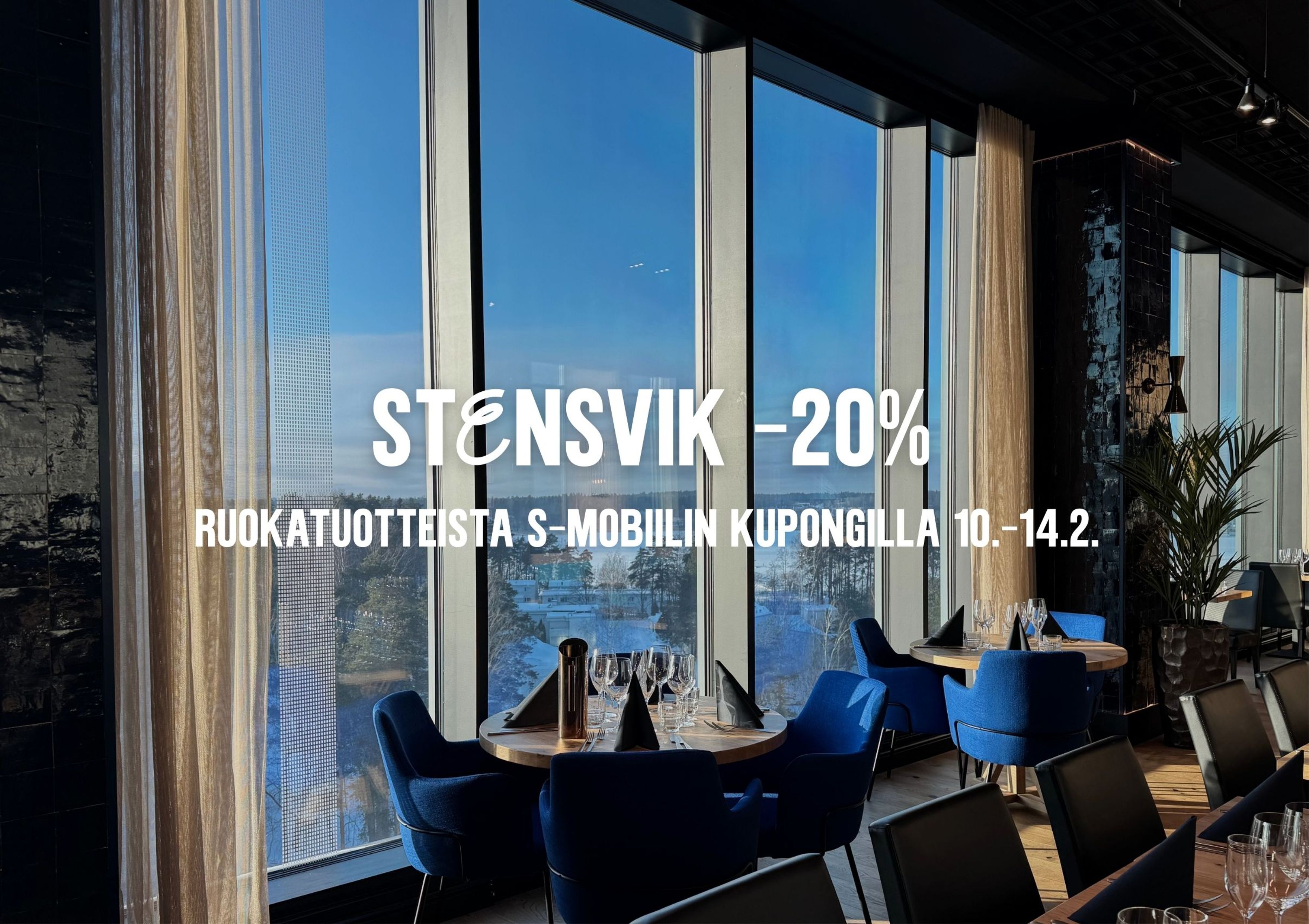 Ystävänpäiväviikolla Stensvikissä herkutellaan hyvään hintaan: kaikista ruokatuotteista saa –20 % alennuksen. Etu on lunastettavissa S‑mobiilin kupongilla 10.–14.2.